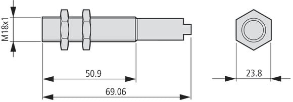 EATON INDUSTRIES - Interruttore di prossimità E57 Premium+ Series, 1 NC, A 2 fili, 20-250 V AC, M18 x 1 mm, Sn= 5 mm, Piatto, Acciaio inox, Collegamento a spina M12 x.