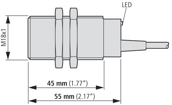 EATON INDUSTRIES - Interruttore di prossimita induttivo, 1 contatto NA, distanza 18mm, 3 fili, 10-30VDC, PNP, M18, materiale isolante, cavo 2m.