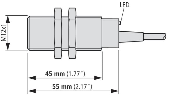 Interruttore di prossimità, Sensori induttivi, Gamma di prodotti: E55 Limit Switch Style Series, Collegamento: 3 fili, Design (dimensioni esterne): M12 x 1 mm, Tensione nominale di esercizio: Ue = 10 - 30 V DC, Distanza nominale di apertura: Sn= 2 mm, Tipo d’installazione: A filo, Tipo di commutazione: PNP, Cavo di collegamento da 2 m, Contatti N/A = normalmente aperto: 1 NA, Materiale: Materiale isolante, Grado di protezione: IP66, Standard: IEC/EN 60947-5-2