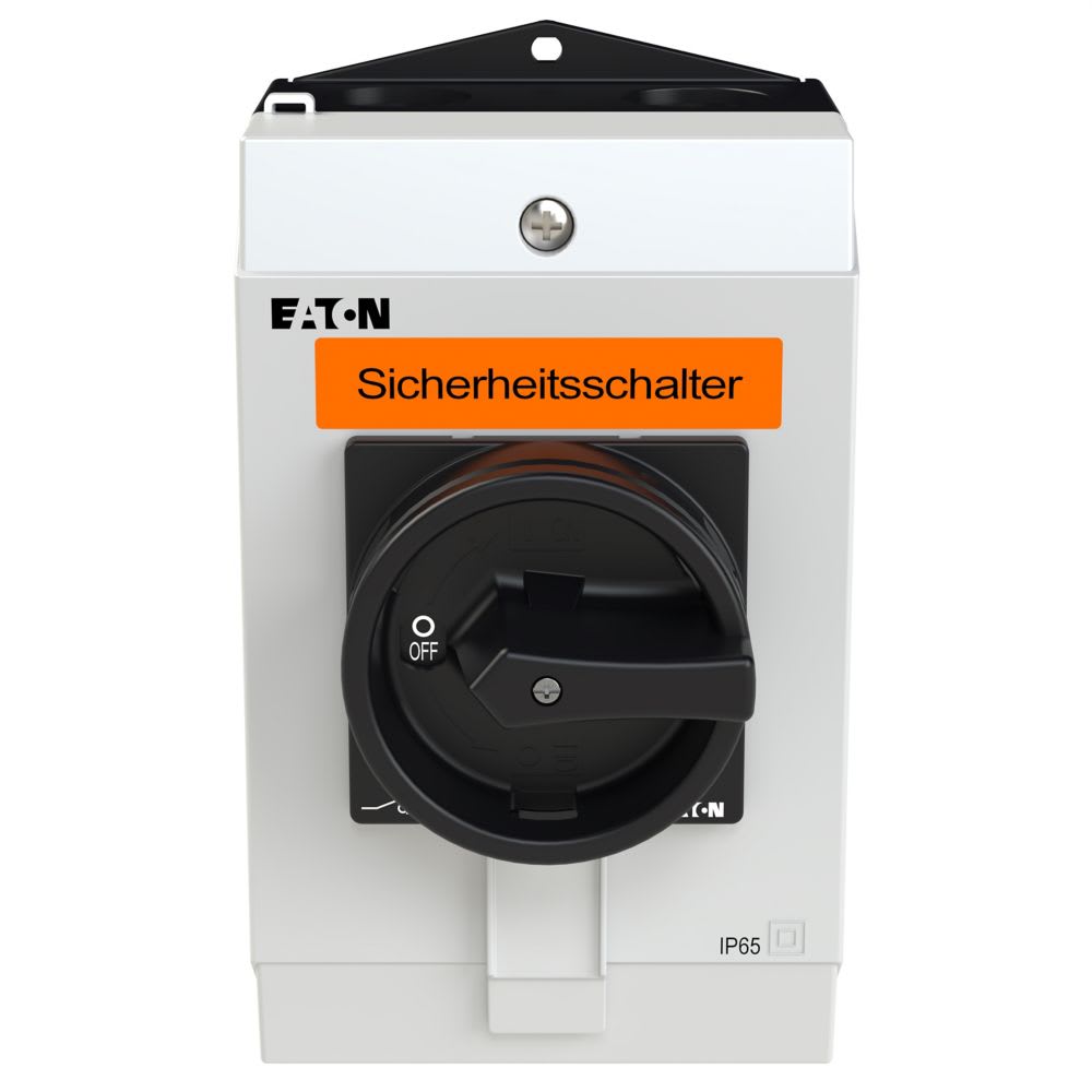 EATON INDUSTRIES - Interruttore di sicurezza P1-25A, 3 poli + N, Funzione ARRESTO, Maniglia rotativa nera e corona di blocco, Bloccabile in posizione 0 con int.