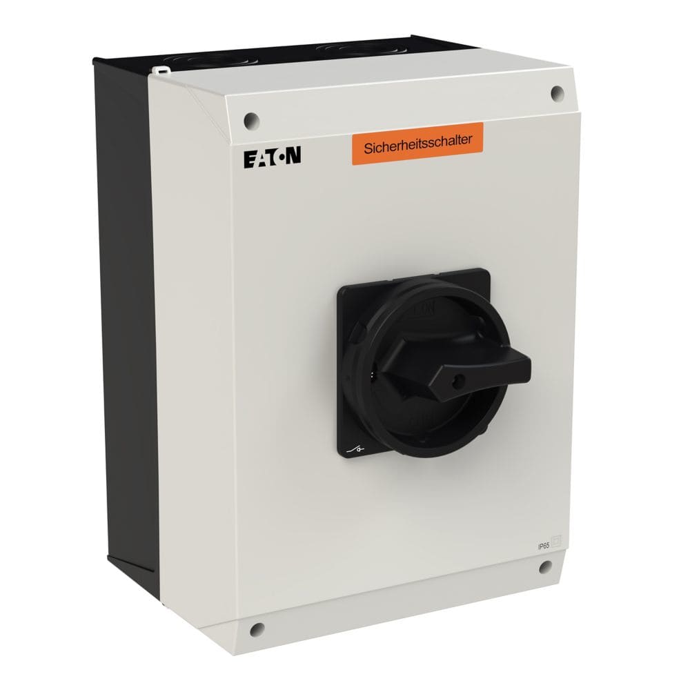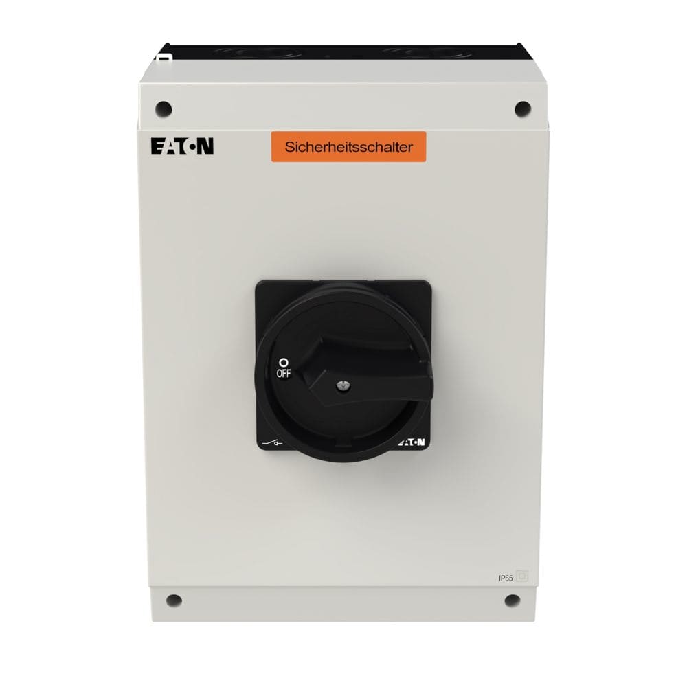 EATON INDUSTRIES - Interruttore di sicurezza P3 100A 3 poli con funzione di arresto maniglia rotativa nera e corona di blocco bloccabile in posizione 0 con interb.