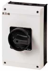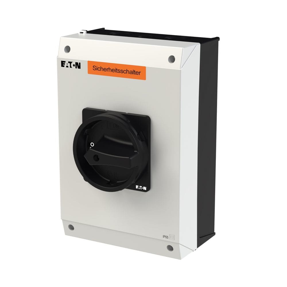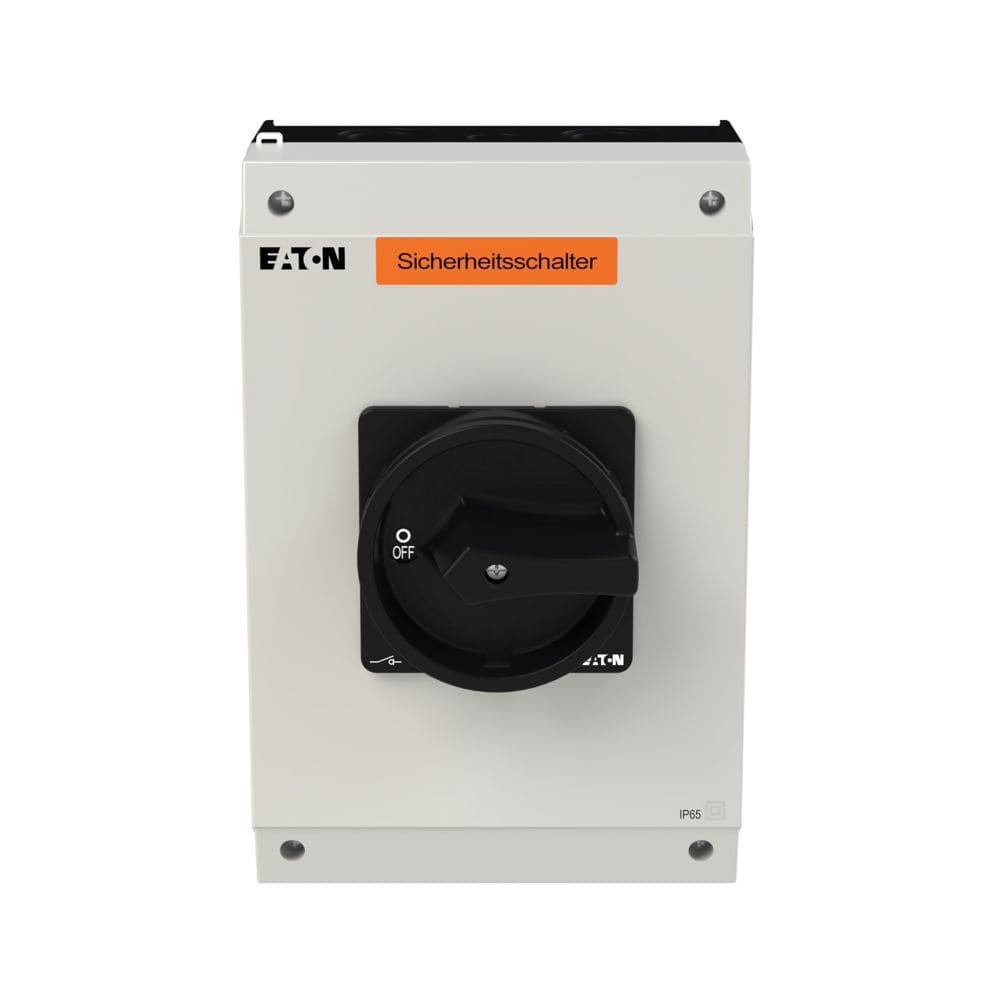 EATON INDUSTRIES - Interruttore di sicurezza P3-63, 63A, 3 poli, Funzione di arresto, Maniglia rotativa nera e corona di blocco, Bloccabile in posizione 0 con interblocco.