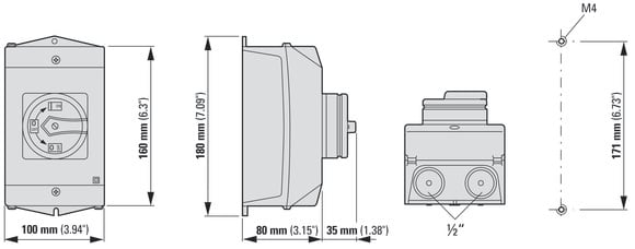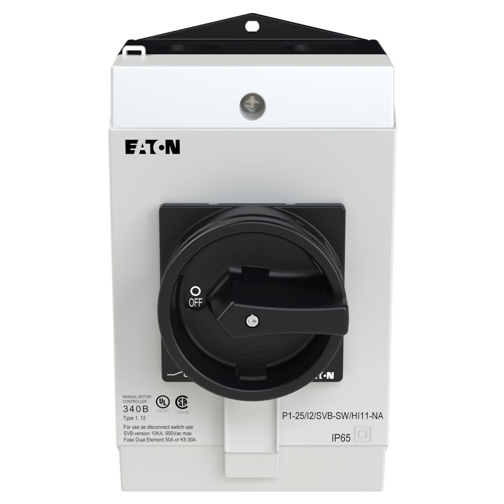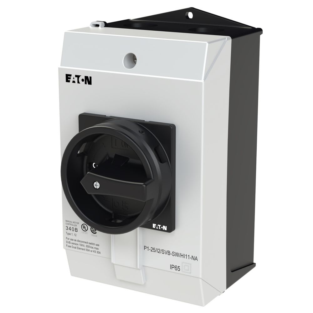 EATON INDUSTRIES - Interruttore generale P1 25 A in custodia 3 poli 1 NA 1 NC Funzione di arresto con maniglia rotativa nera e corona di blocco UL/CSA. 255889