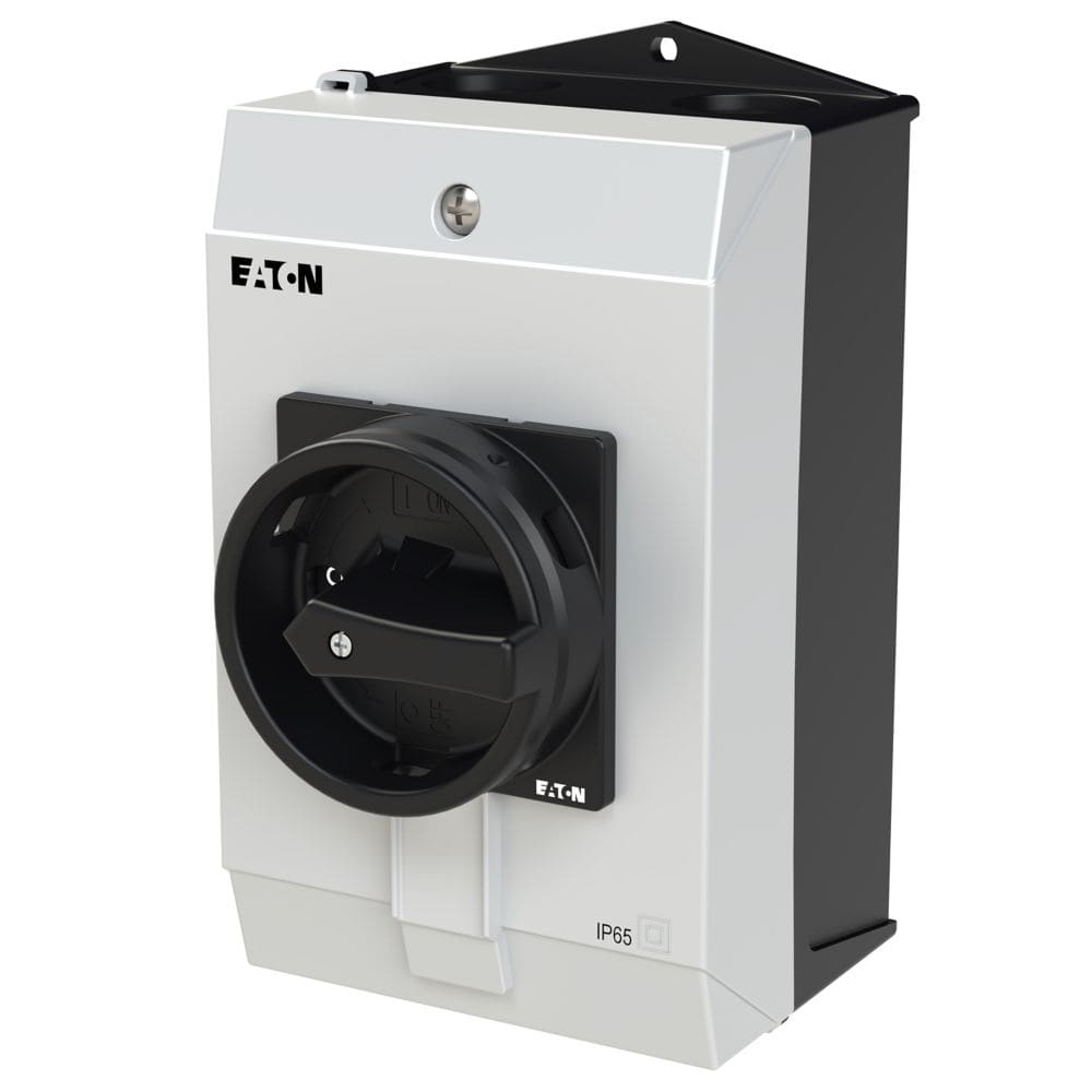 EATON INDUSTRIES - Interruttore generale, P1, 25 A, in custodia, 3 poli, Funzione di arresto, con maniglia rotativa nera e corona di blocco, lucchettabile in posizione 0.