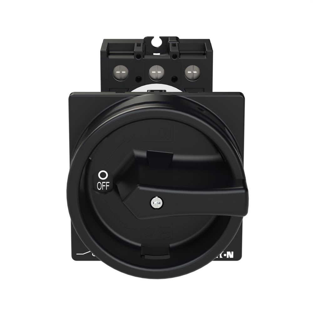 EATON INDUSTRIES - Interruttore generale P1-25A a comando rinviato 3 poli con funzione di arresto maniglia rotativa nera e corona di blocco lucchettabile in posizione.