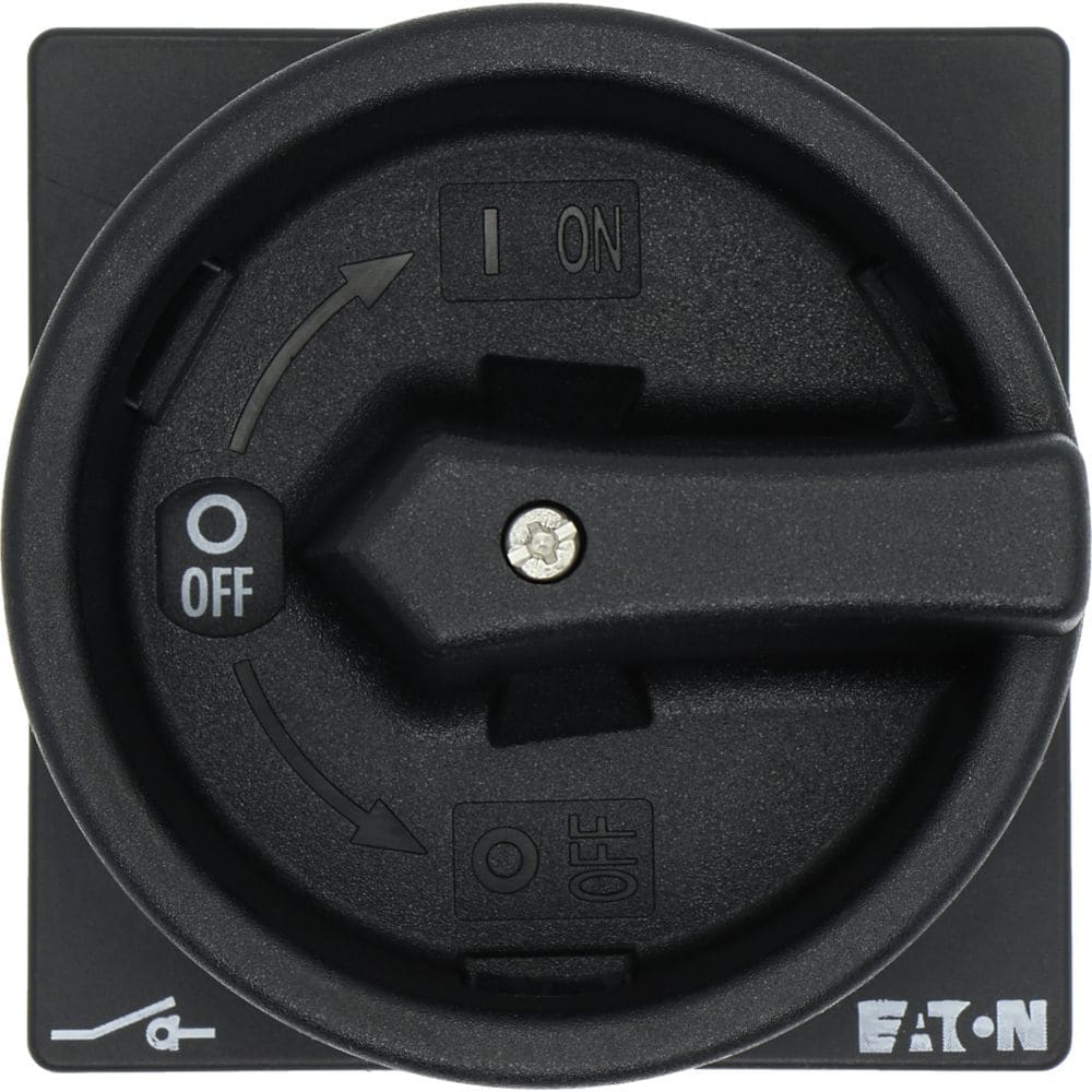 EATON INDUSTRIES - Interruttore generale P1-25A a comando rinviato, 3 poli + N, Funzione di arresto, maniglia rotativa nera e corona di blocco, lucchettabile.