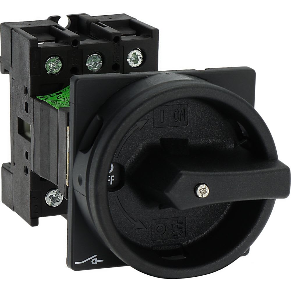 EATON INDUSTRIES - Interruttore generale P1 32A a comando rinviato 3 poli con Funzione di arresto maniglia rotativa nera e corona di blocco lucchettabile in posi. 055484
