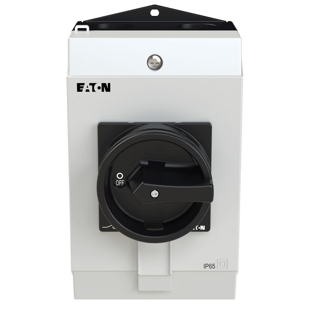 EATON INDUSTRIES - Interruttore generale P1-32A in custodia, 3 poli + N, Funzione di arresto, maniglia rotativa nera e corona di blocco, lucchettabile in posizio. 207317