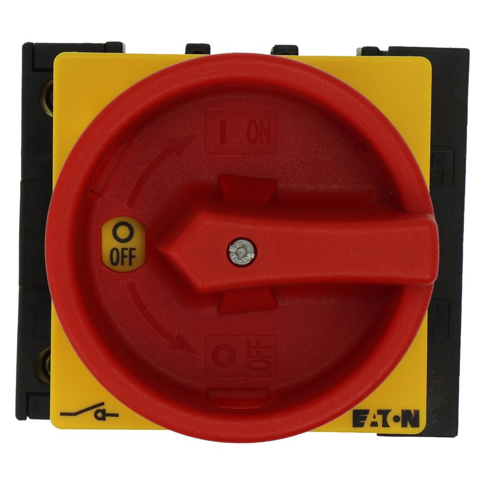 EATON INDUSTRIES - Interruttore generale P1 40A da incasso 3 poli + N 1 NA 1 NC funzione di arresto di emergenza con maniglia rotativa rossa e corona di blocco SEZ(3P+N)X40A 1NA+1N HI11.