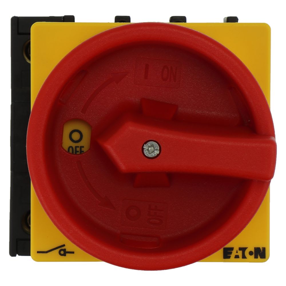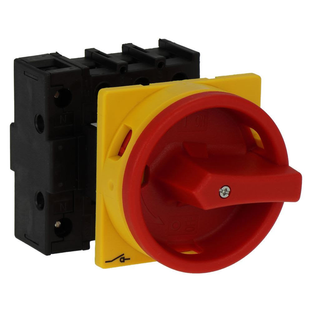 EATON INDUSTRIES - Interruttore generale P1 40A da incasso 3 poli + N funzione di arresto di emergenza con maniglia rotativa rossa e corona di blocco gialla bloc P1-40/EA/SVB/N SEZ (3P+N)X40A INC EM.