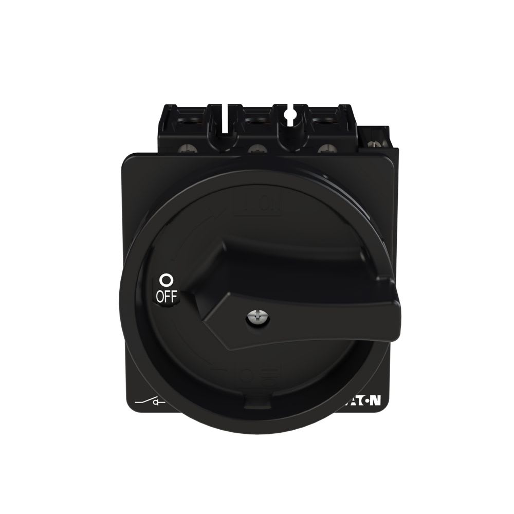 EATON INDUSTRIES - Interruttore generale P3 100A a comando rinviato 3 poli 1NA 1NC Funzione di arresto con maniglia rotativa nera e corona di blocco lucchetto.