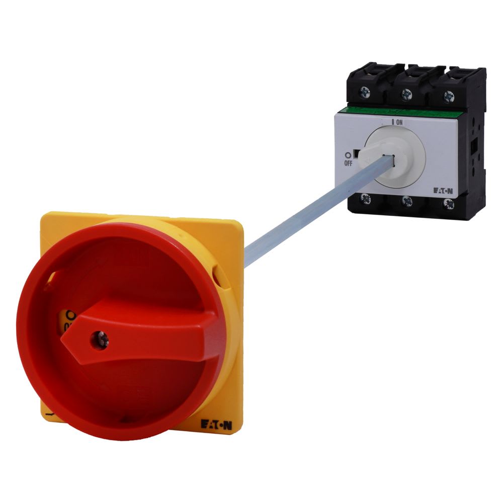 EATON INDUSTRIES - Interruttore generale P3 100A a comando rinviato 3 poli con Funzione di arresto d'emergenza maniglia rotativa rossa e anello di blocco giallo. 172818