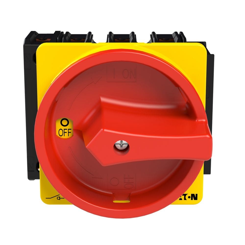 EATON INDUSTRIES - Interruttore generale P3 100A a incasso 3 poli + N 1NA 1NC Funzione arresto d'emergenza maniglia rotativa rossa anello d