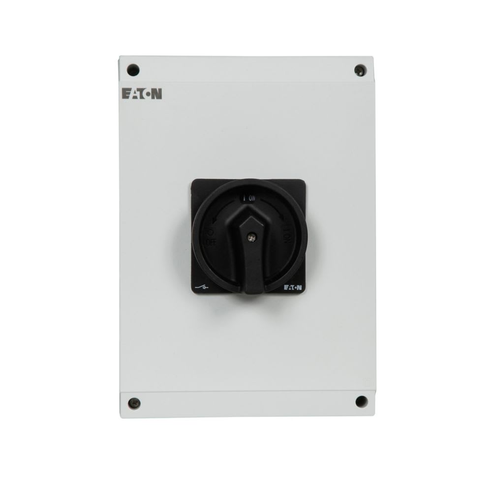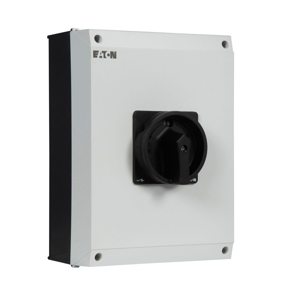 EATON INDUSTRIES - Interruttore generale P3 100A in custodia 3 poli 1NA 1NC Funzione di arresto con maniglia rotativa nera corona di blocco lucchettabile. 207375