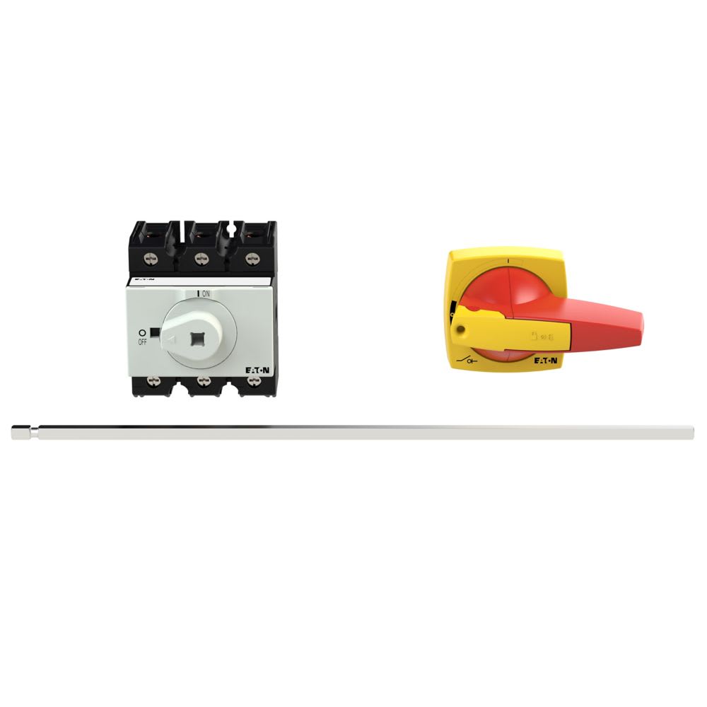 EATON INDUSTRIES - Interruttore generale, P3, 63 A, a comando rinviato, 3 poli, Funzione di arresto d'emergenza, lucchettabile in posizione 0, Con albero metallico per 4.
