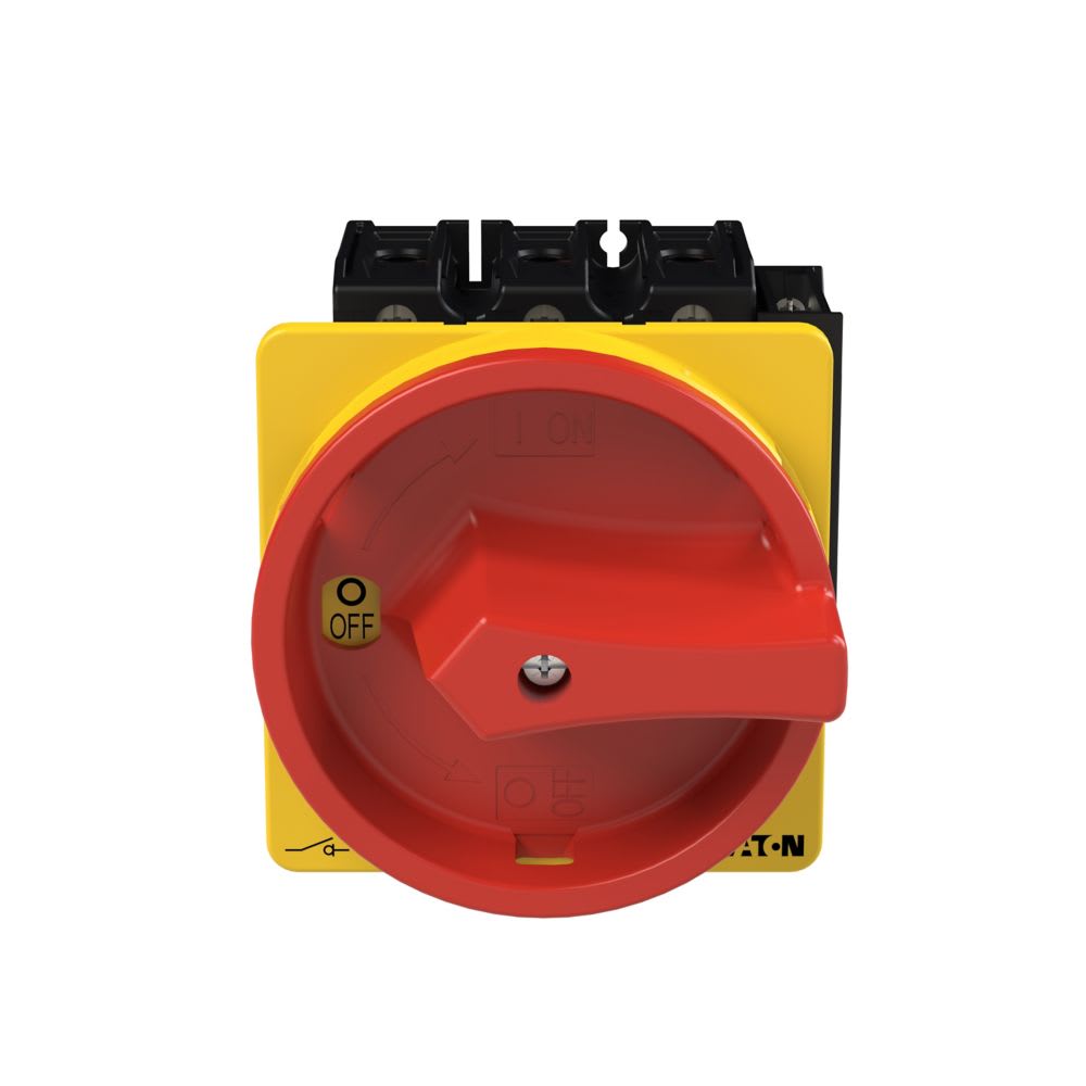 EATON INDUSTRIES - Interruttore generale P3 63A a comando rinviato 3 poli con 1NA 1NC Funzione di arresto d'emergenza maniglia rotativa rossa e anello di bloc.