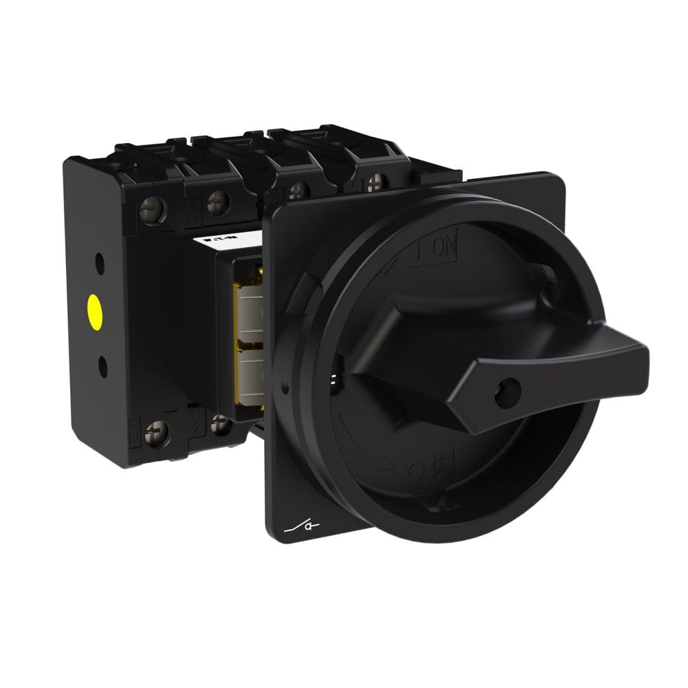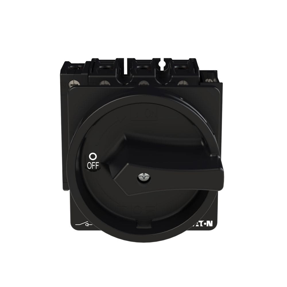 EATON INDUSTRIES - Interruttore generale P3 63A a comando rinviato 3 poli + N 1NA 1NC Funzione di arresto con maniglia rotativa nera e corona di blocco lucchetto.