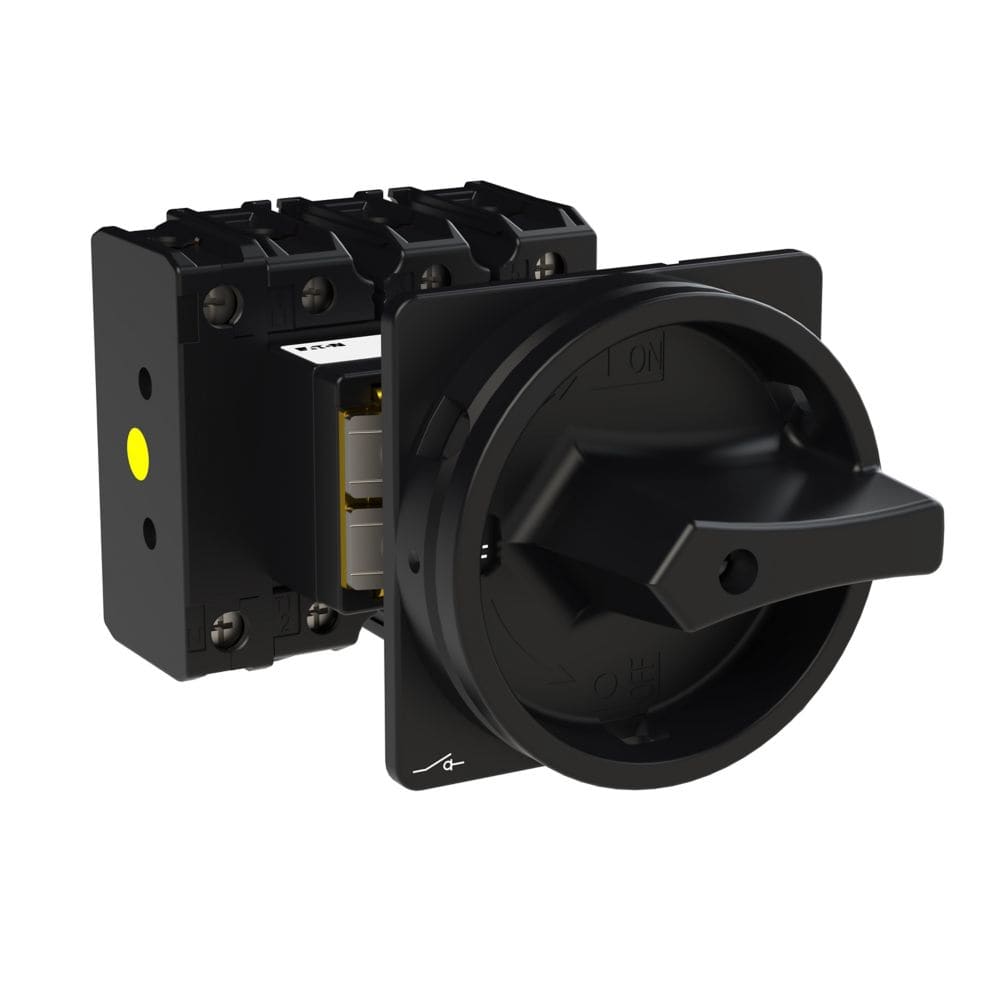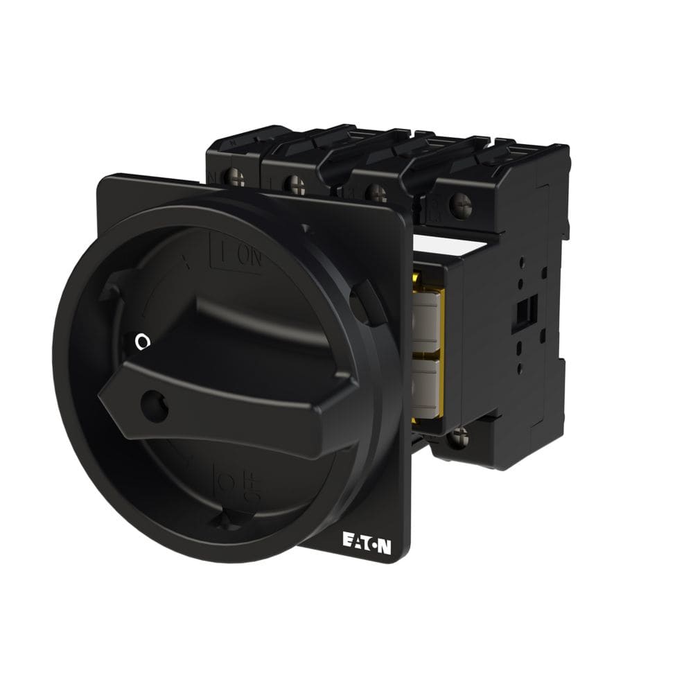 EATON INDUSTRIES - Interruttore generale P3 63A a comando rinviato 3 poli + N con funzione di arresto maniglia rotativa nera corona di blocco lucchettabile. 017517