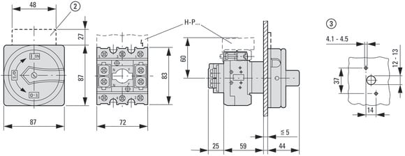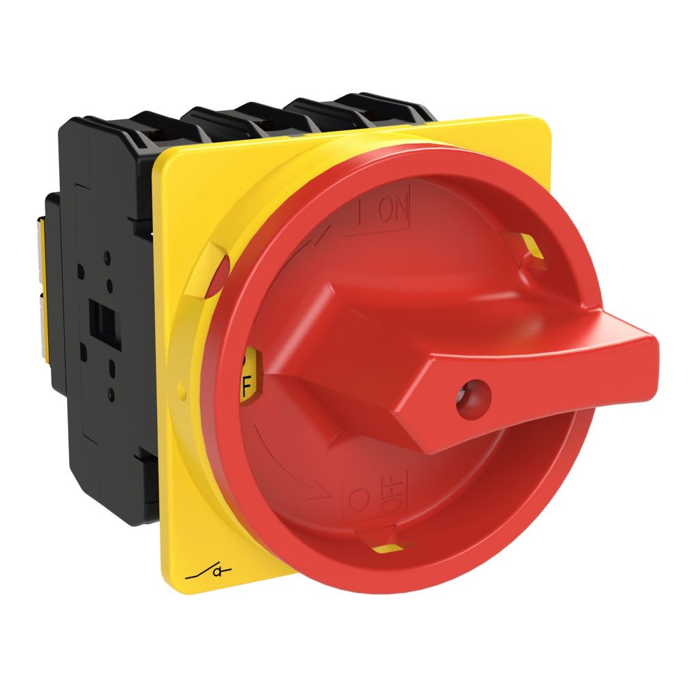EATON INDUSTRIES - Interruttore generale P3 63A a incasso 3 poli 1NA 1NC Funzione arresto d'emergenza maniglia rotativa rossa anello blocco.