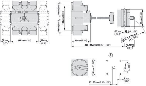 EATON INDUSTRIES - Interruttore generale P5-160/V/SVB/N 160A a comando rinviato 3P+N Funzione di arresto d'emergenza con maniglia rotativa rossa e anello di blocco gial 280930