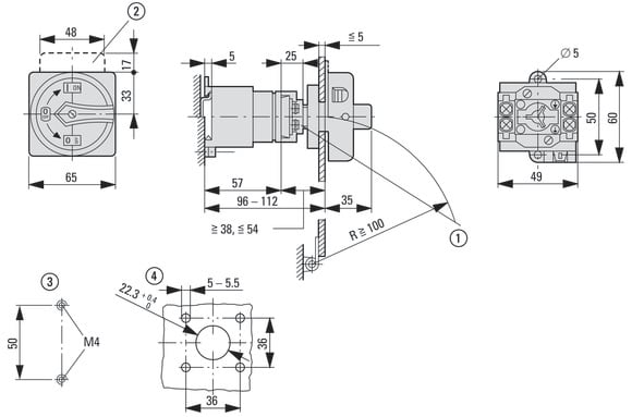 EATON INDUSTRIES - Interruttore generale T0-2-8324/V/SVB, 20A, comando rinviato, 2 Unità costruttive, 4 poli, Funzione di arresto d'emergenza, maniglia rotativa rossa e ane.