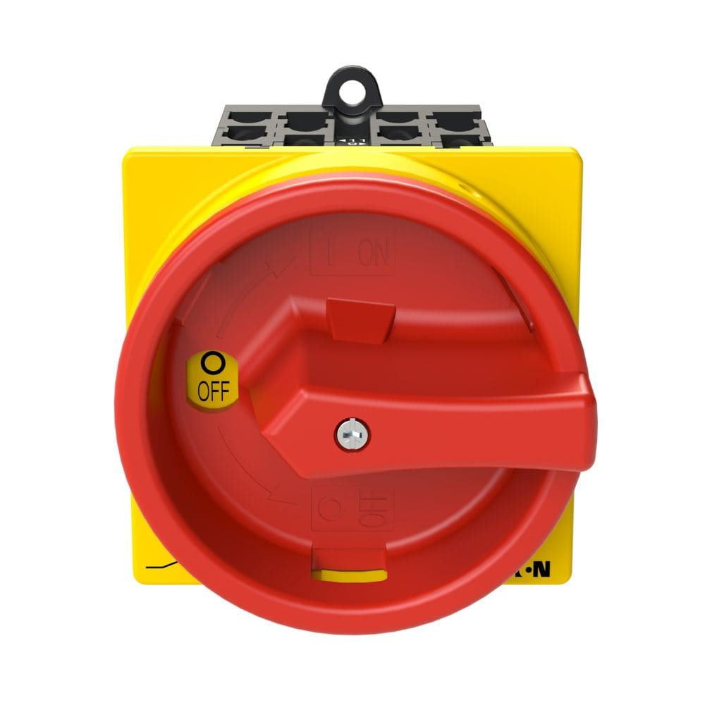 EATON INDUSTRIES - Interruttore generale T0 20 A a comando rinviato 3 Unità costruttiva/e 3 poli 2 NA 1 NC Funzione di arresto d'emergenza con maniglia rotativa.