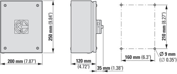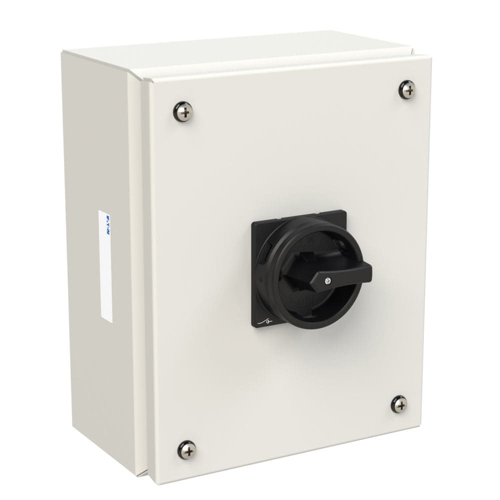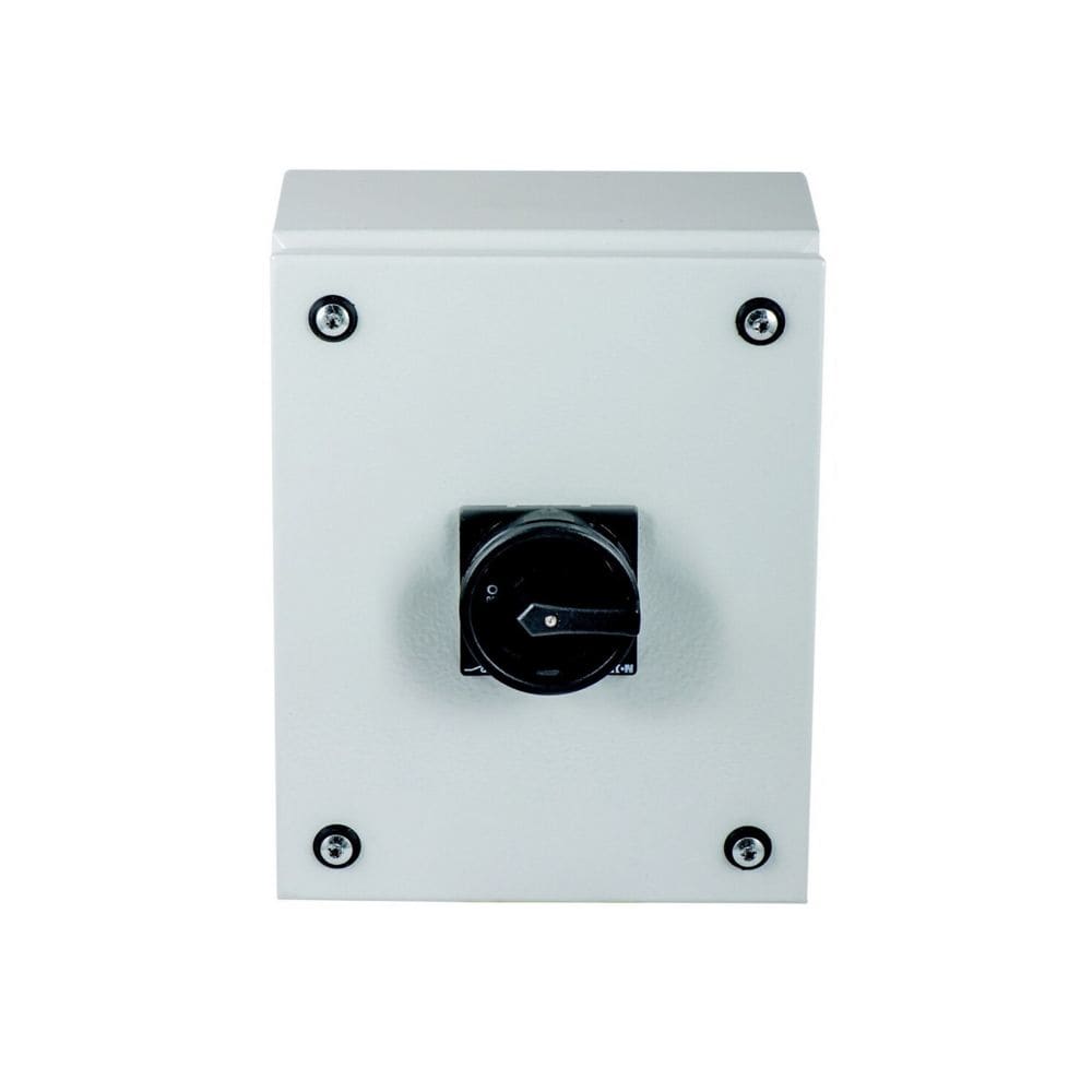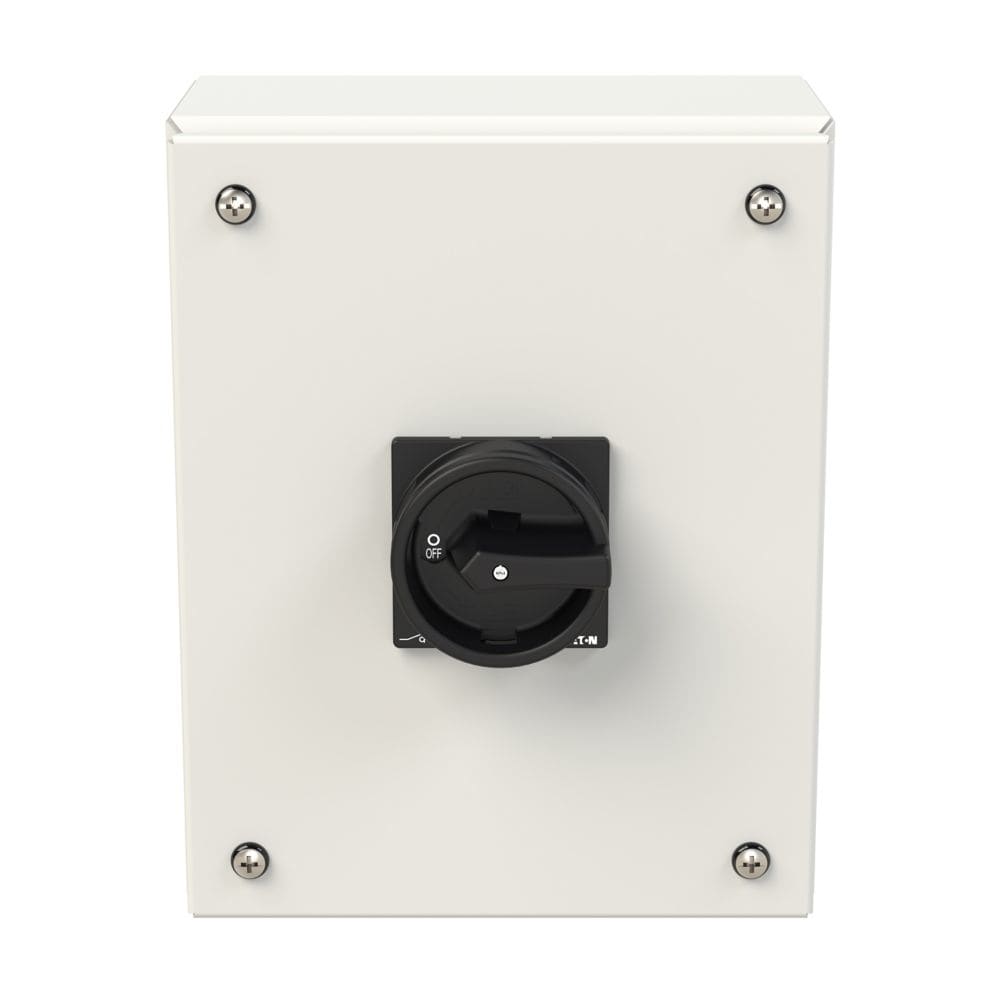 EATON INDUSTRIES - Interruttore generale T0 20 A in custodia 4 Unità costruttiva/e 8 poli Funzione di arresto con maniglia rotativa nera e corona di blocco lucchetto.