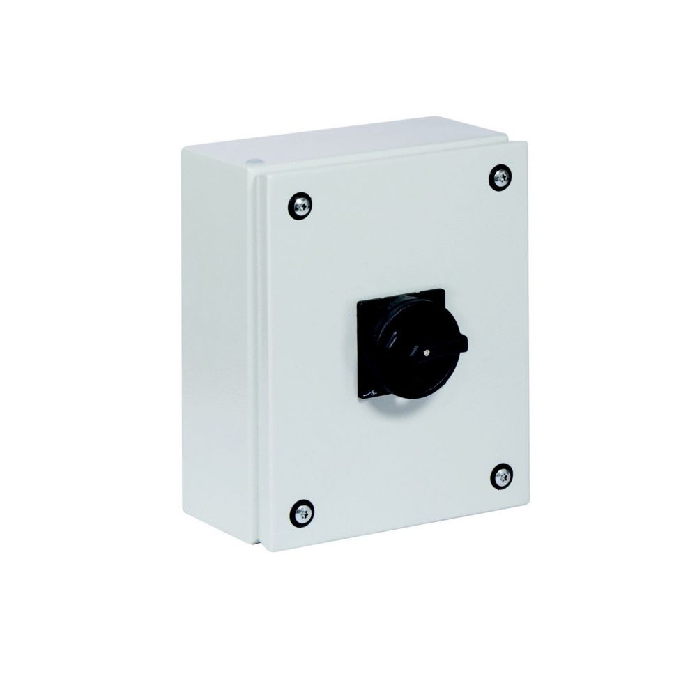 EATON INDUSTRIES - Interruttore generale T3 32 A in custodia 4 Unità costruttiva/e 8 poli Funzione di arresto con maniglia rotativa nera e corona di blocco lucchetto.