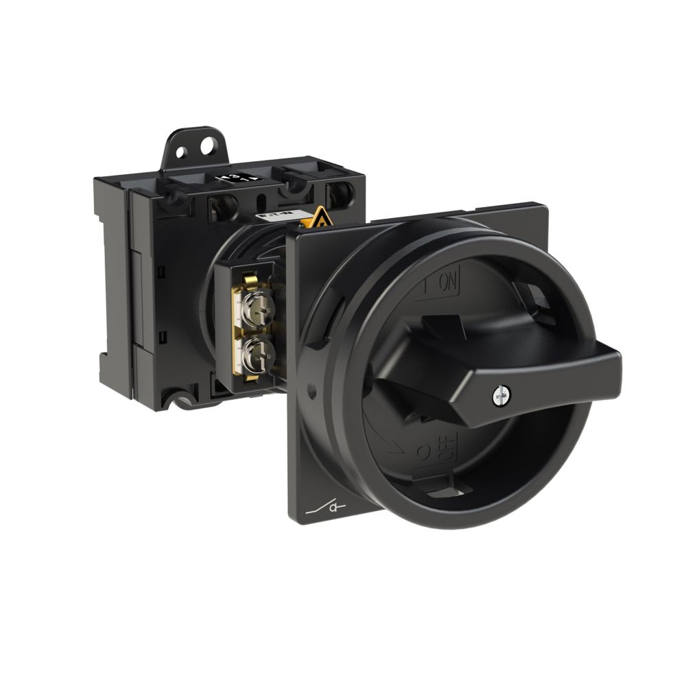 EATON INDUSTRIES - Interruttore generale T3 32A a comando rinviato 1 Unità costruttiva/e 2 poli Funzione di arresto con maniglia rotativa nera e corona di blocco.