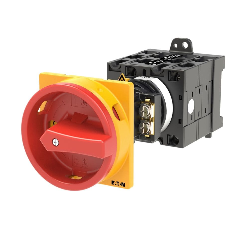 EATON INDUSTRIES - Interruttore generale T3 32A a comando rinviato 4 Unità costruttive 6 poli 1NA 1NC Funzione di arresto d'emergenza con maniglia rotativa. 059462