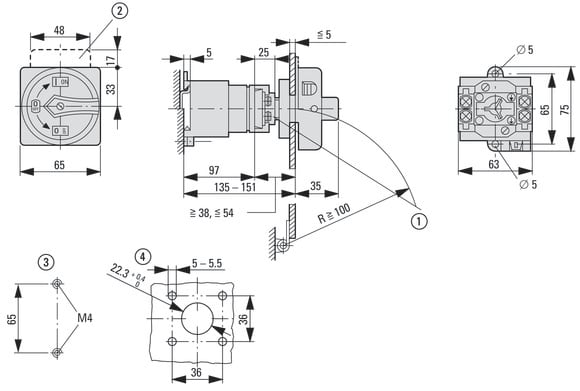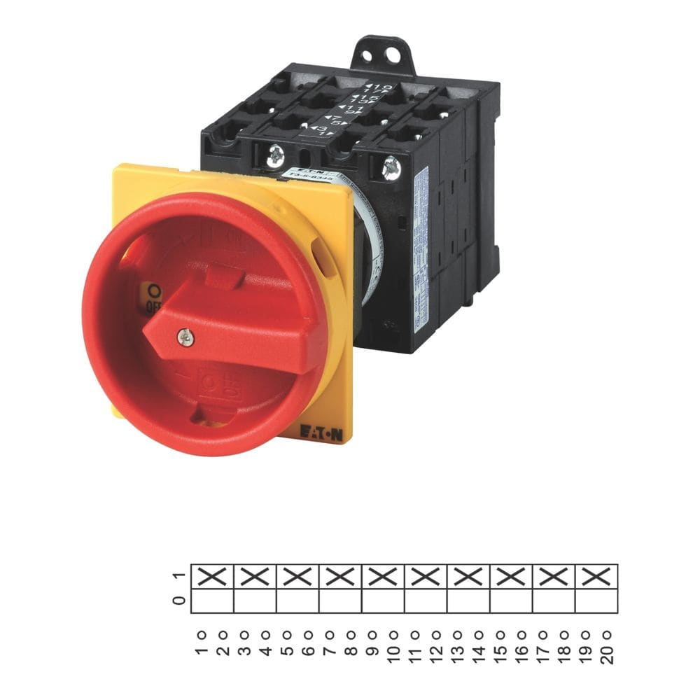 EATON INDUSTRIES - Interruttore generale T3 32A a comando rinviato 5 Unità costruttive 10 poli Funzione di arresto d'emergenza con maniglia rotativa rossa e an.