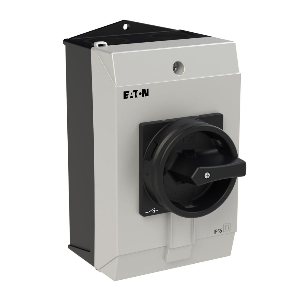 EATON INDUSTRIES - Interruttore generale T3 32A in custodia 1 Unità costruttiva 1 polo Funzione di arresto con maniglia rotativa nera e corona di blocco lucchetto.