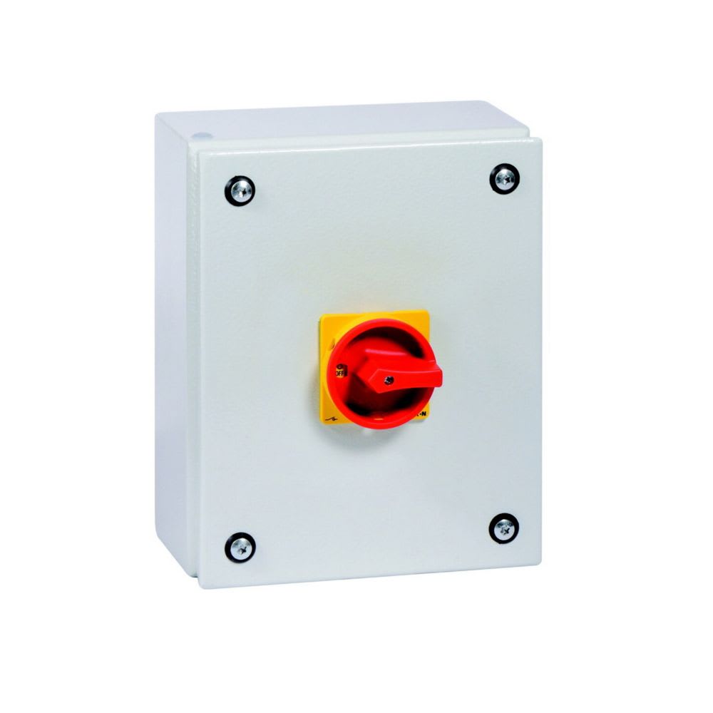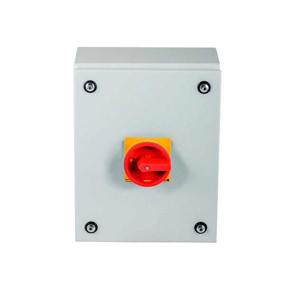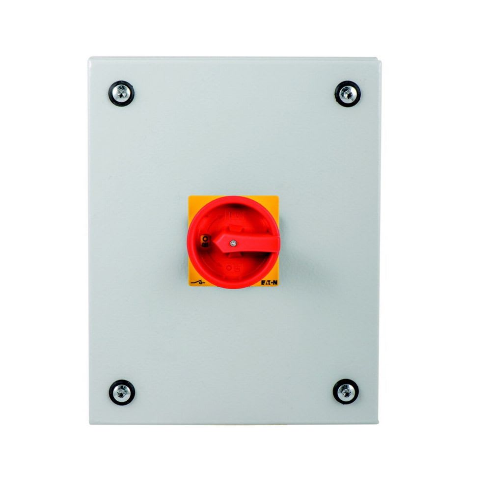 EATON INDUSTRIES - Interruttore generale T3 32A in custodia 3 Unità costruttiva/e 6 poli Funzione di arresto d'emergenza con maniglia rotativa rossa e anello di.