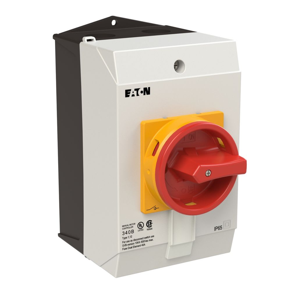 EATON INDUSTRIES - Interruttore generale T3 32A in custodia 4 Unità costruttive 8 poli Funzione di arresto d'emergenza con maniglia rotativa rossa e anello di arresto.