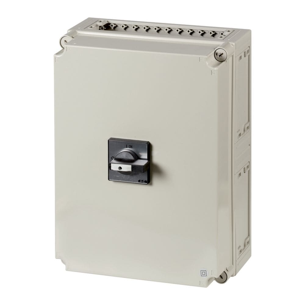 EATON INDUSTRIES - Interruttore generale T6 160A in custodia 6 Unità costruttiva/e 6 poli 1 NA 1 NC Funzione di arresto con maniglia rotativa nera e corona