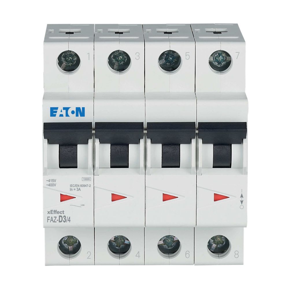 EATON INDUSTRIES - Interruttore magnetotermico 3A 4p caratteristica D FAZ-D3/4 INT MT 10KA 4P D 3A.