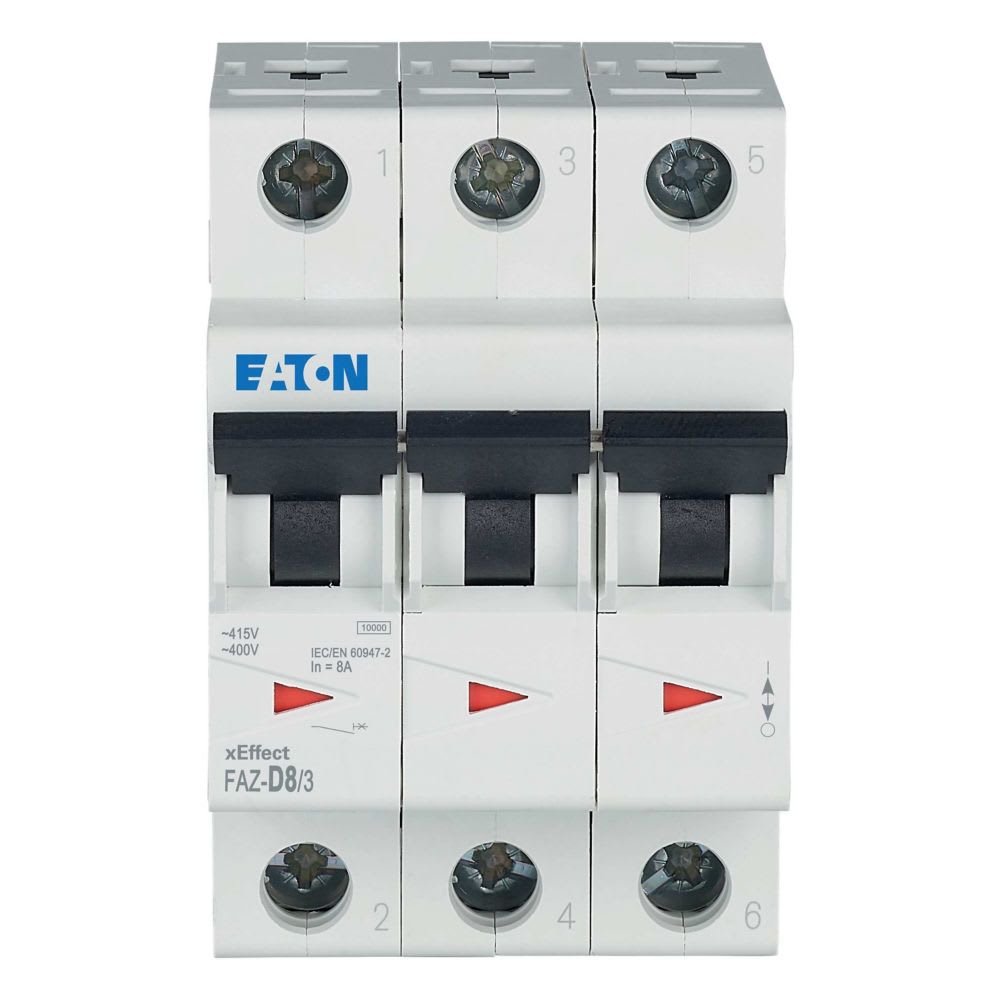 EATON INDUSTRIES - Interruttore magnetotermico 8A 3p caratteristica D FAZ-D8/3 INT. MT 10KA 3P D 8A.