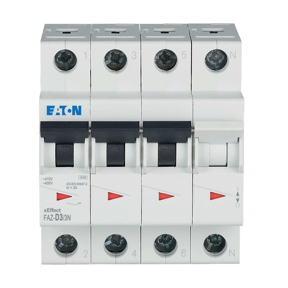 EATON INDUSTRIES - Interruttore magnetotermico (MCB), 3A, 3P+N, caratteristica: D, FAZ-D3/3N INT. MT 10KA 3P+N D 3A.