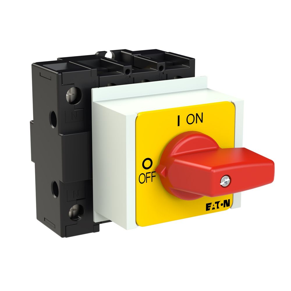 EATON INDUSTRIES - Interruttore ON/OFF, P1, 25A, Da incasso in sistemi di distribuzione modulare, 3 poli + N, Funzione di arresto d'emergenza, con leva rossa e targhett.