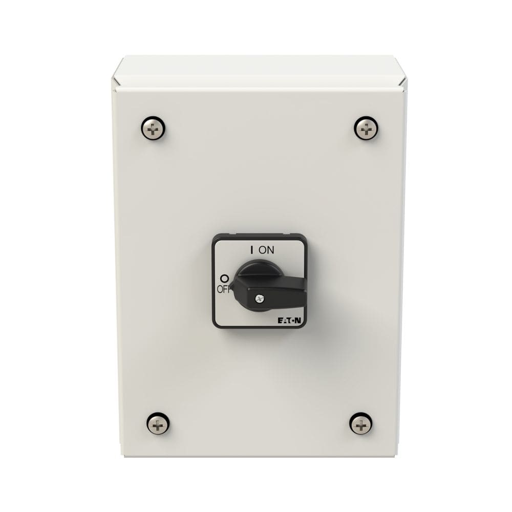 EATON INDUSTRIES - Interruttore ON/OFF, P1, 32 A, 3 poli + N, con leva nera e piastra frontale, in custodia di acciaio.