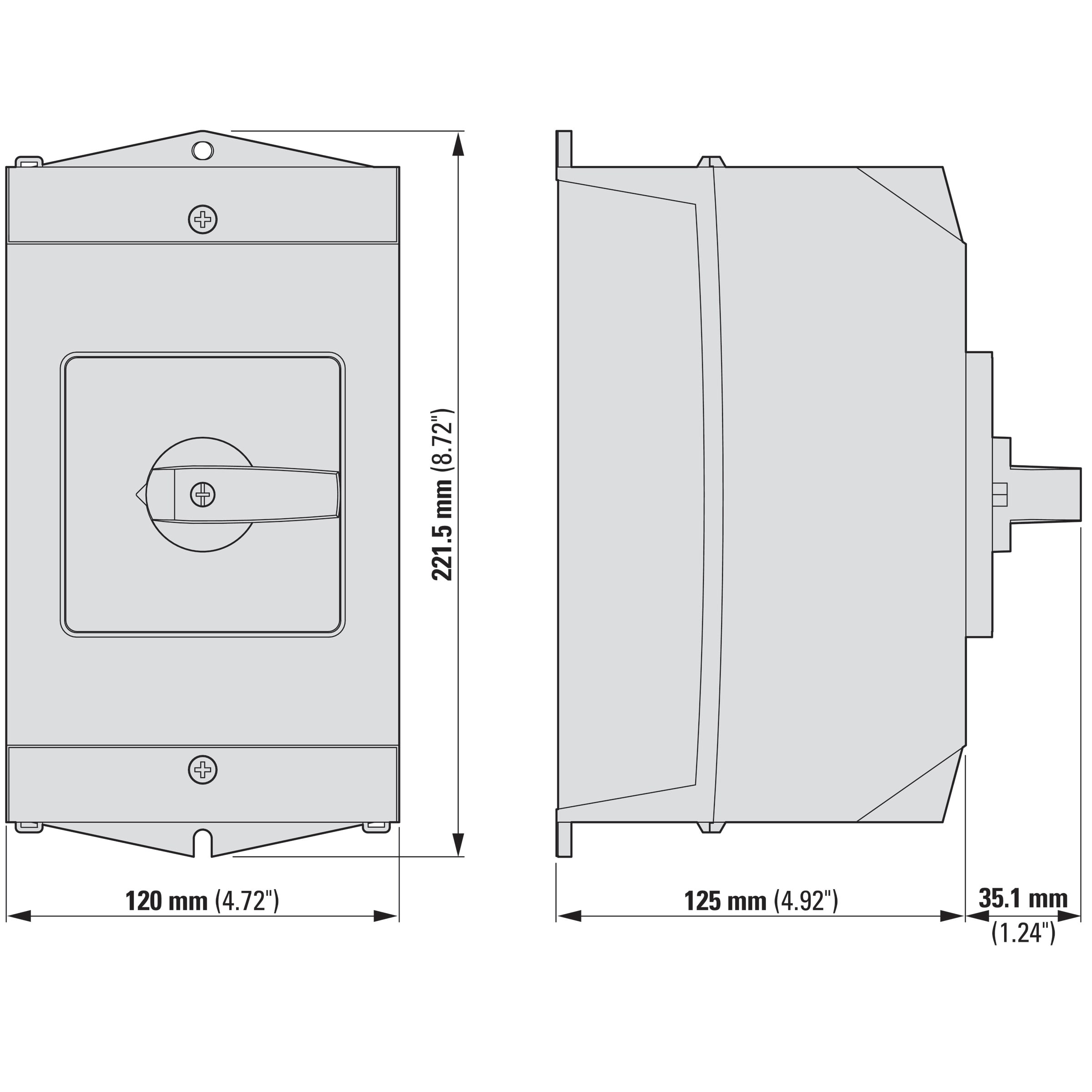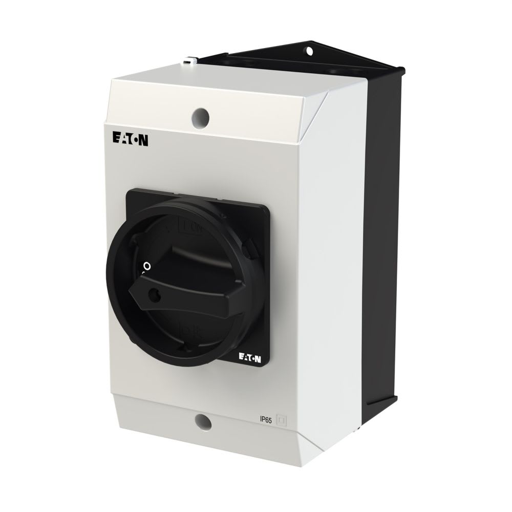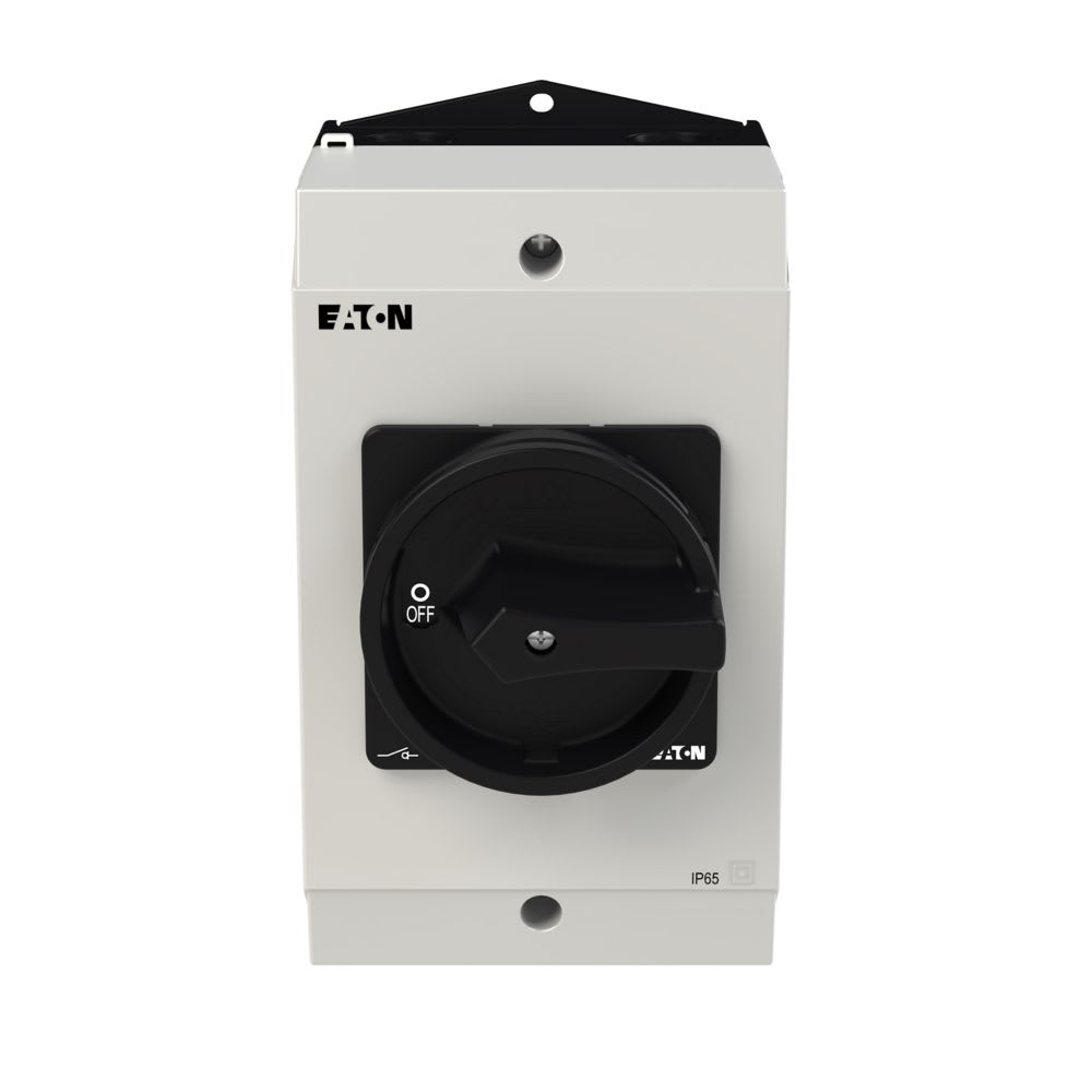 EATON INDUSTRIES - Interruttore ON/OFF, P3, 63 A, in custodia, 3 poli, Funzione di arresto, con maniglia rotativa nera e corona di blocco, lucchettabile in posizione 0.