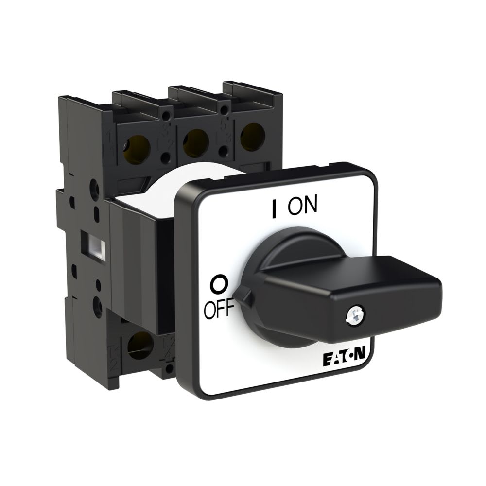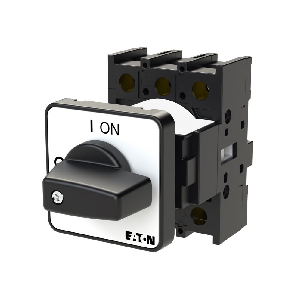 EATON INDUSTRIES - Interruttore P1-25/EZ SEZ ON/OFF, 25A, da incasso a fissaggio centrale, 3 poli, leva nera e targhetta frontale.