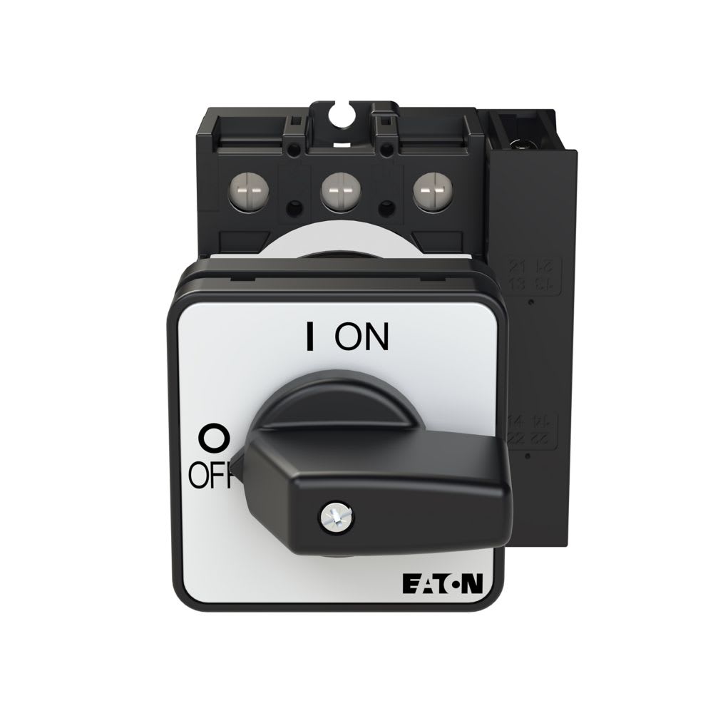 EATON INDUSTRIES - Interruttore P1, 25A, 3 poli, 1NA+1NC, comando rinviato, leva nera e targhetta frontale.