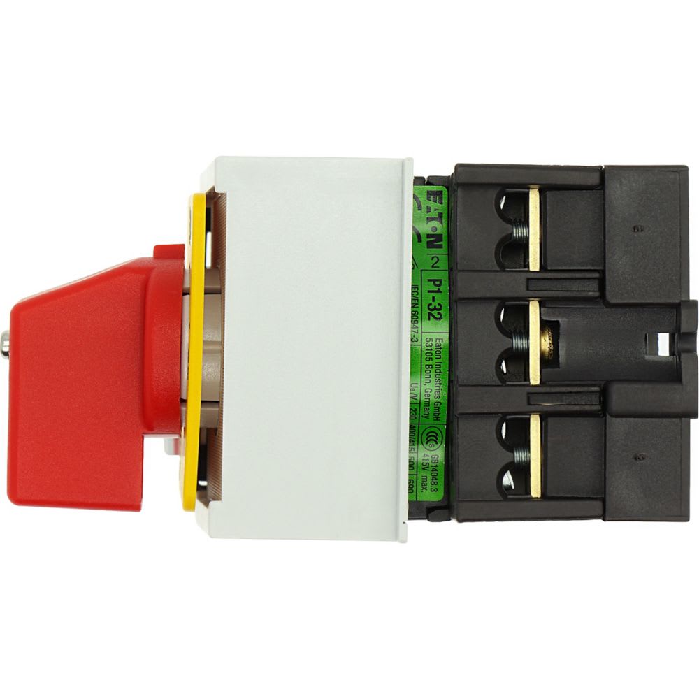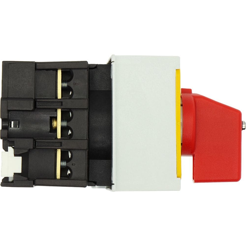 Interruttore On-Off, P1, Corrente nominale continua (Iu): 32 A, Funzioni: Funzione di spegnimento di emergenza, In dotazione: Presa per il pollice rossa e piastra anteriore gialla, Tipo di montaggio: Fissaggio su quadro di installazione e distribuzione, Numero di poli: a 3 poli, Grado di protezione: NEMA Altro