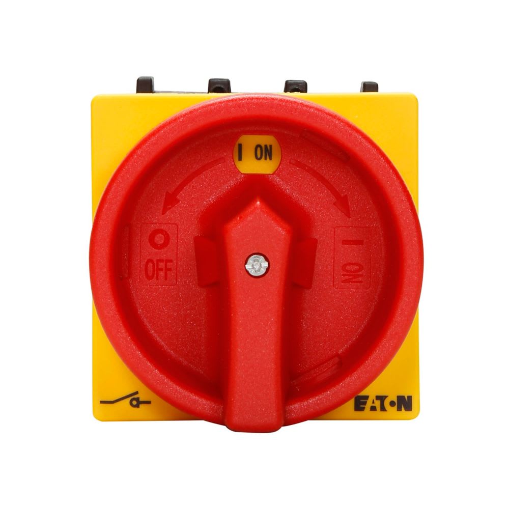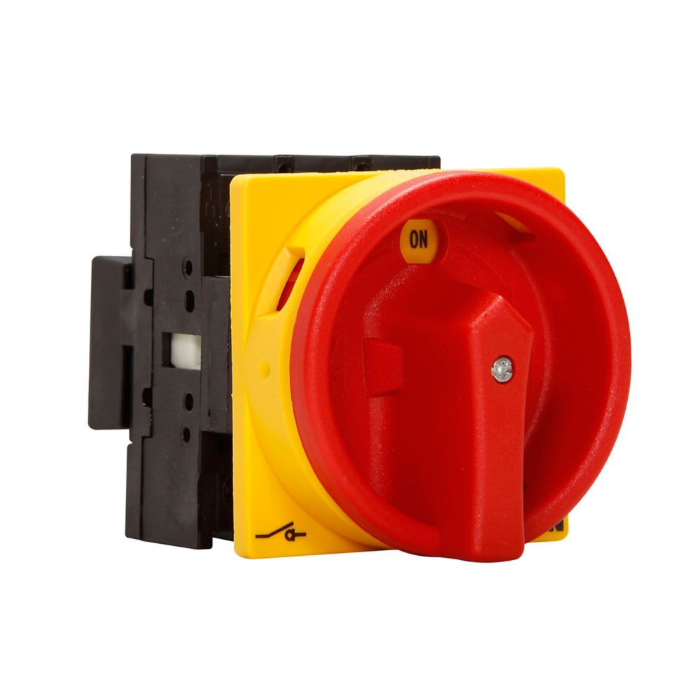 EATON INDUSTRIES - Interruttore P1-32A ON/OFF da incasso a fissaggio centrale, 3 poli, con leva nera e targhetta frontale. 048369