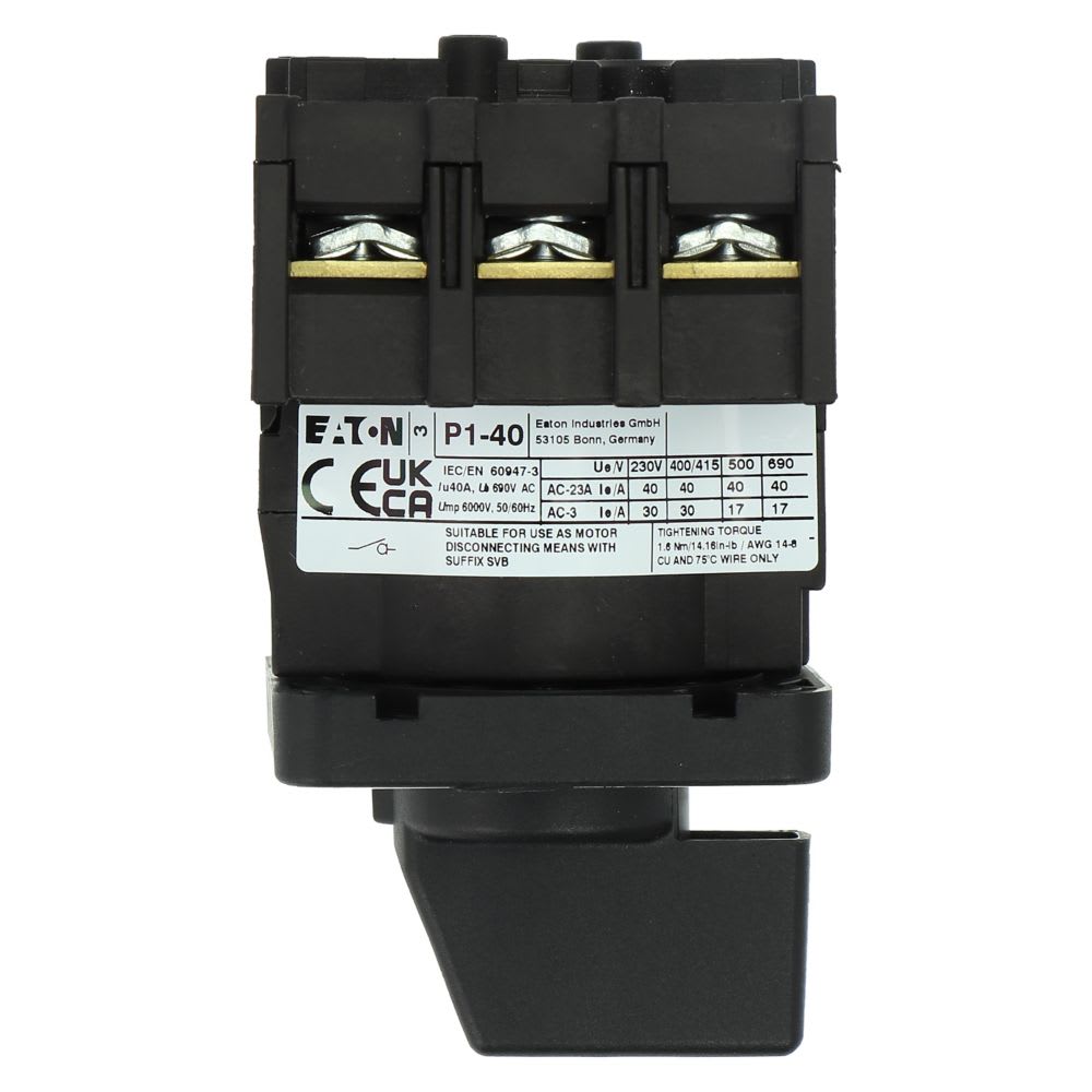 EATON INDUSTRIES - Interruttore P1-40, 40A, da incasso, 3 poli, maniglia e piastra nere SEZIONATORE DI POTENZA 3P INCASS