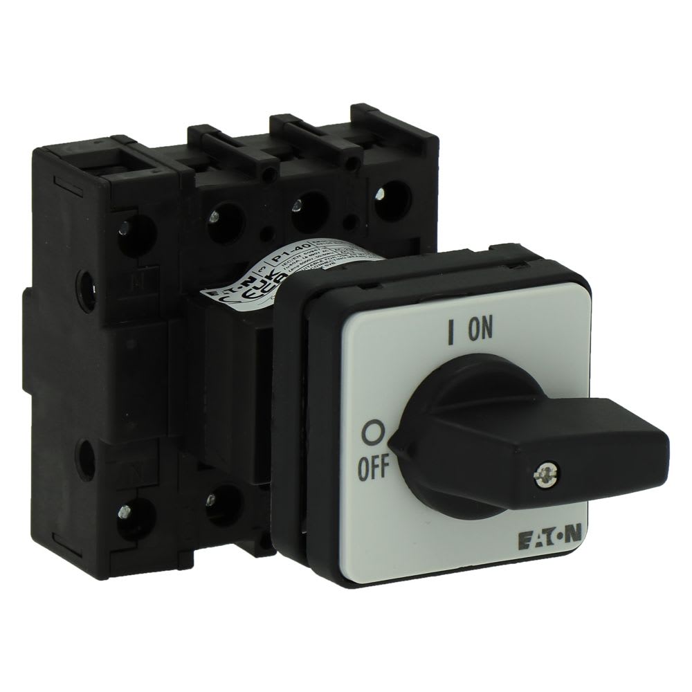 EATON INDUSTRIES - Interruttore P1-40A ON/OFF da incasso a fissaggio centrale con maniglia e piastra frontale nere SEZ.
