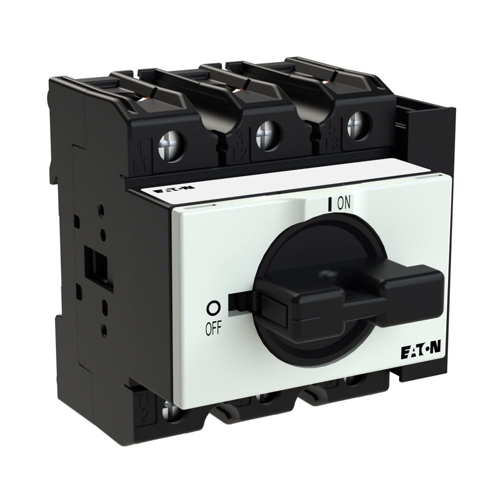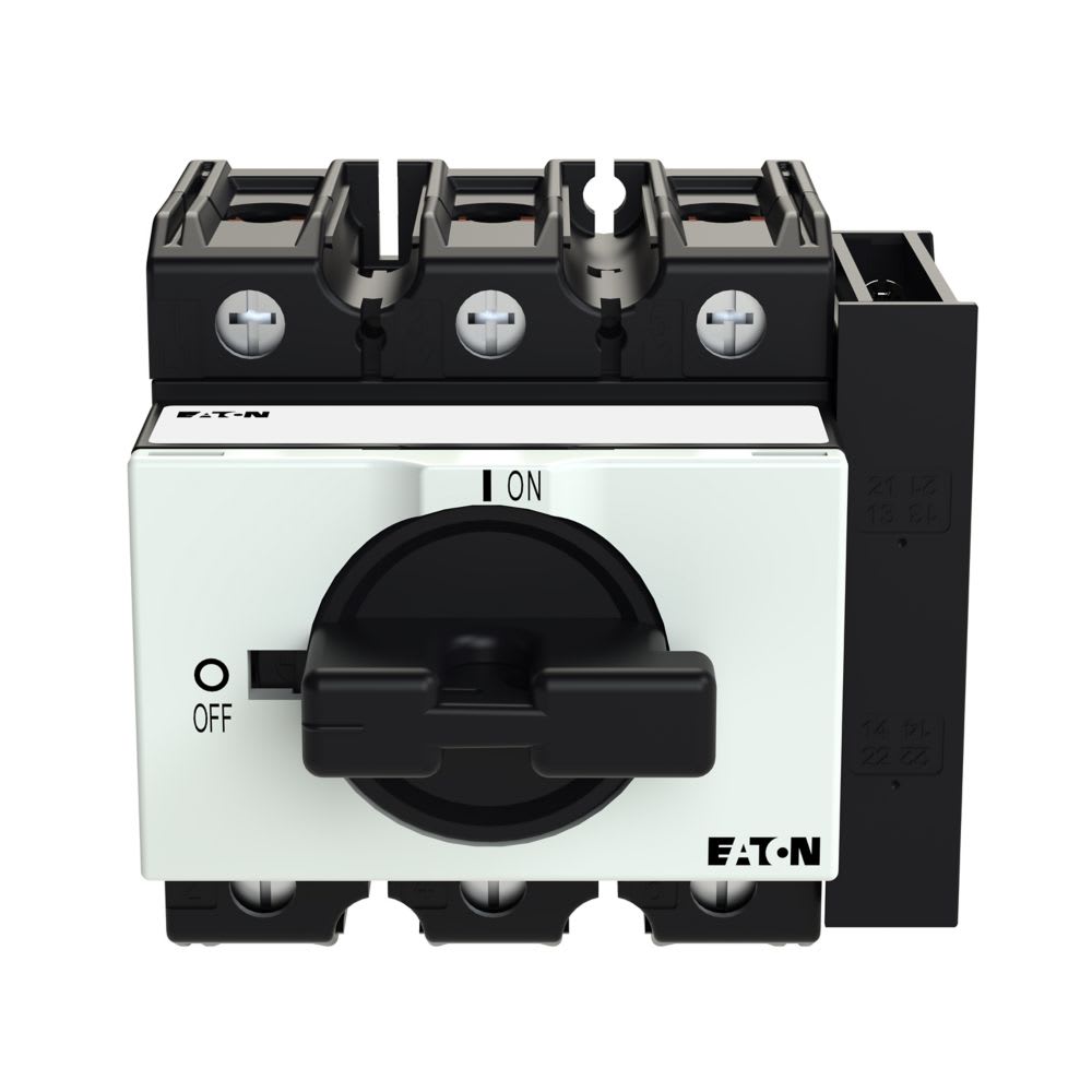 EATON INDUSTRIES - Interruttore P3-100, 100A, Da incasso in sistemi di distribuzione modulare, 3 poli, 1NA, 1NC, leva nera e targhetta frontale.