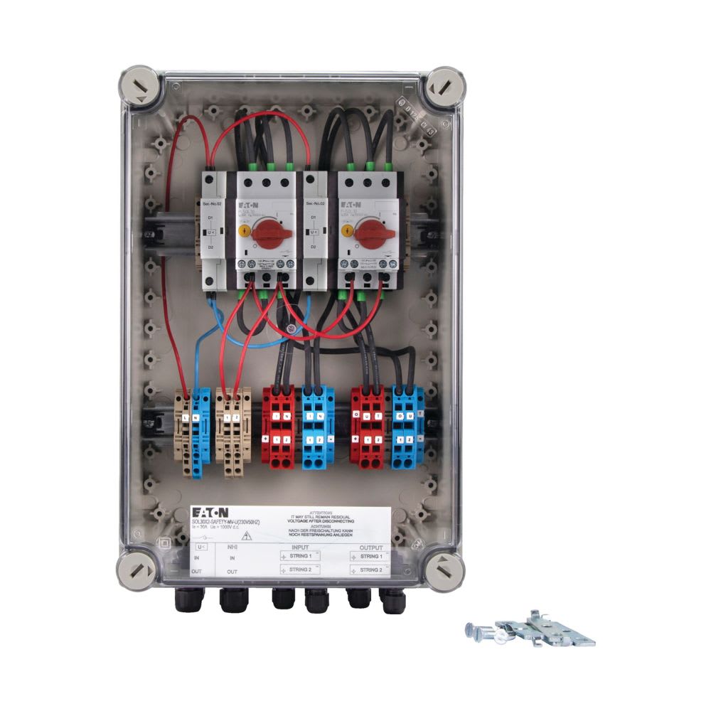 EATON INDUSTRIES - Interruttore per 2 stringhe, 25A, MV, per la sicurezza, 230V 50Hz. 168099