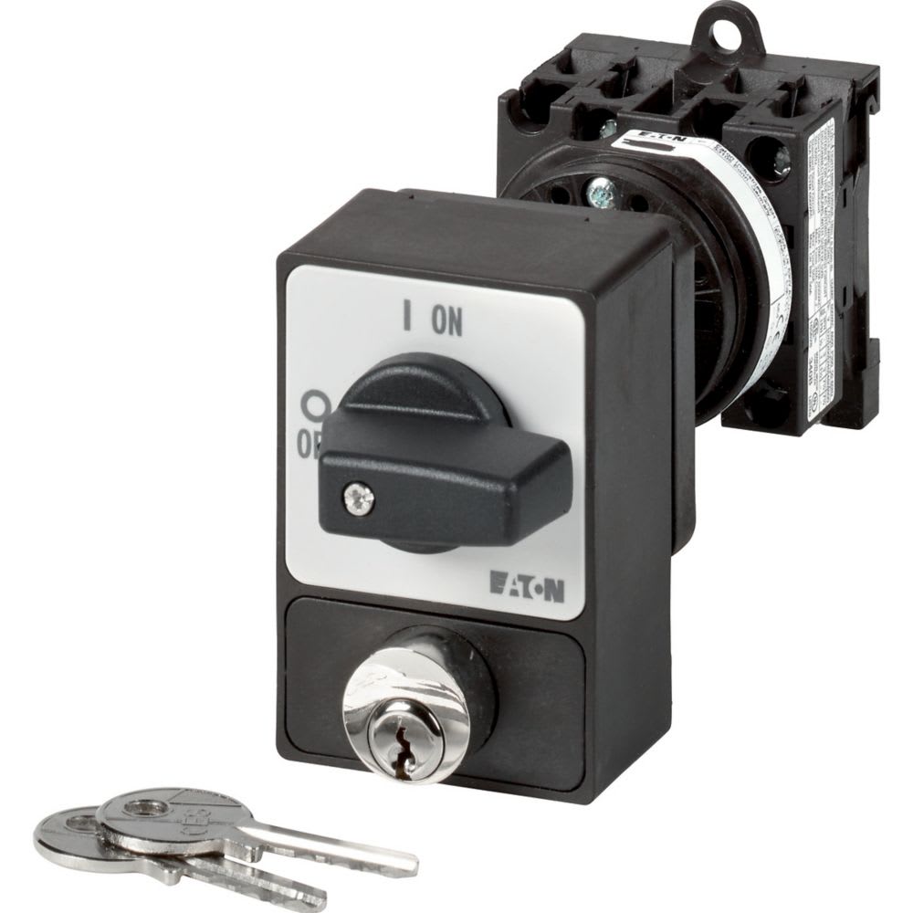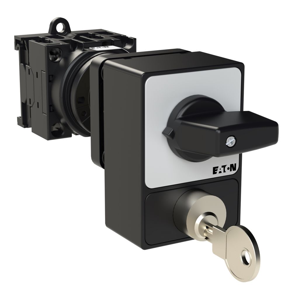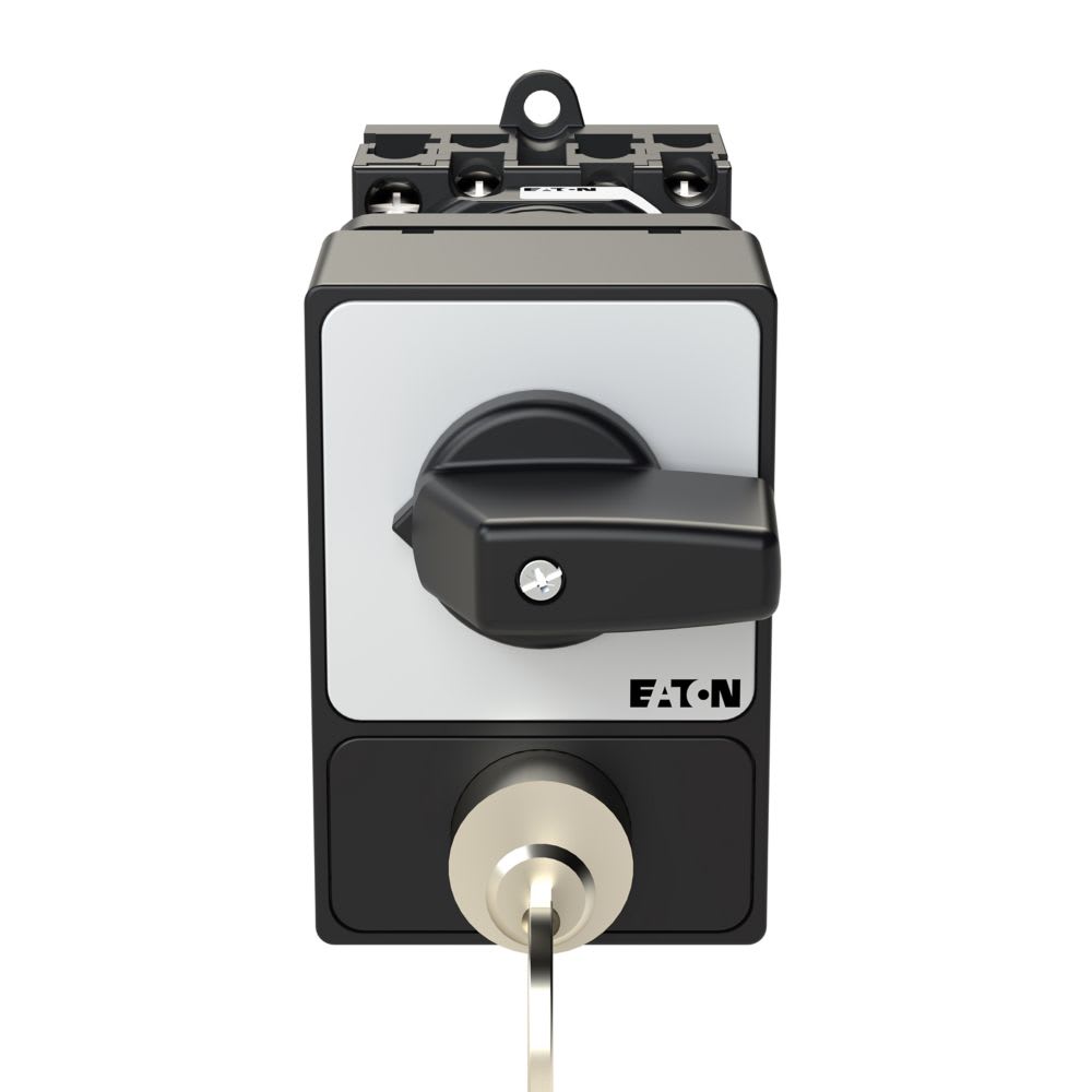 EATON INDUSTRIES - Interruttore T0-2-1/Z/SVA(A) 3P 20A, comando rinviato, leva nera, targhetta frontale, blocco con serratura a cilindro.